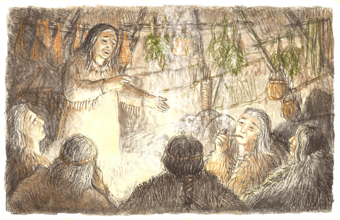 Nous avons très peu d'informations concernant les Autochtones parce qu'ils n'avaient pas d'écriture. Les choses du passé et les savoirs se transmettent par la parole, c'est ce qu'on appelle la tradition orale. Il est donc difficile de savoir quelles étaient les personnes importantes pour les Algonquiens parce qu'ils n'ont pas laissé de traces écrites.