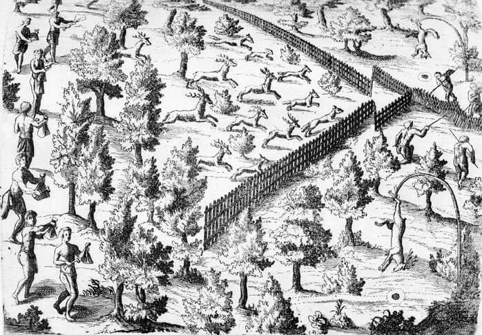 La chasse aux cerfs chez les Hurons, illustrée par Samuel de Champlain
