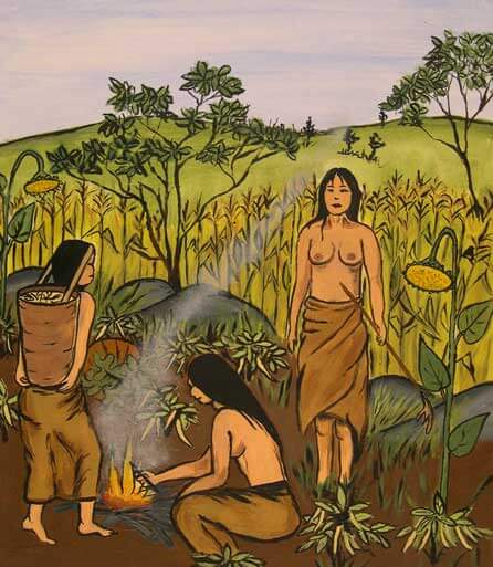 Les femmes s’occupent de l’agriculture, des semailles jusqu’à la moisson. Elles cueillent des plantes, des herbes, des noix et des petits fruits, elles recueillent l’eau d’érable et elles préparent les repas. Elles préparent les peaux d’animaux pour confectionner des vêtements. Elles fabriquent aussi plusieurs objets de la vie quotidienne, comme des pots et des vases avec l’argile, de même que des sacs et des paniers avec l’écorce