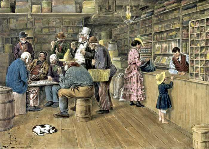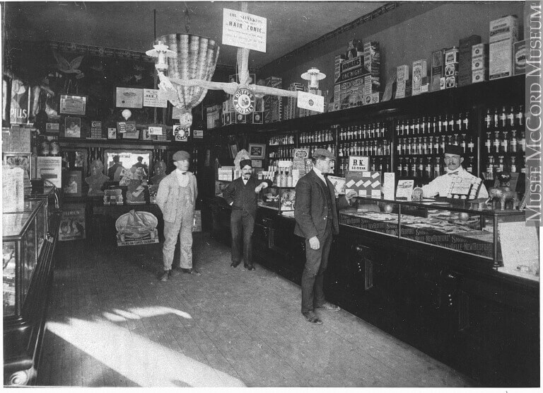 Intérieur d'un magasin général, Saint-Hyacinthe, QC, vers 1900