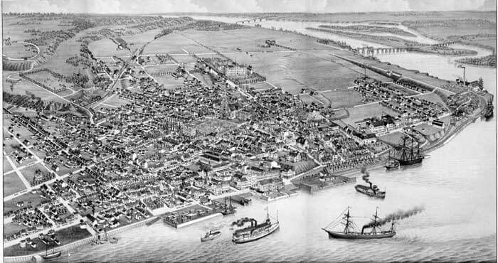 Vue à vol d'oiseau de Trois-Rivières, 1881