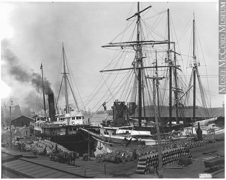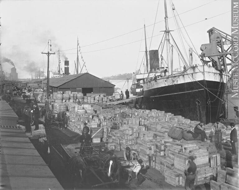 En cette année 1905, Montréal connaît une importante activité portuaire. Le port de Montréal est la porte d’entrée des immigrants et des touristes et une plaque tournante pour le commerce, le courrier et les produits en provenance de partout à travers le monde. C’est aussi par le port que transitent les céréales cultivées dans l’ouest du pays. Le canal de Lachine est encore très utilisé pour acheminer les grains jusqu’au port, pour ensuite les embarquer sur un bateau. C’est encore le moyen le plus économique.