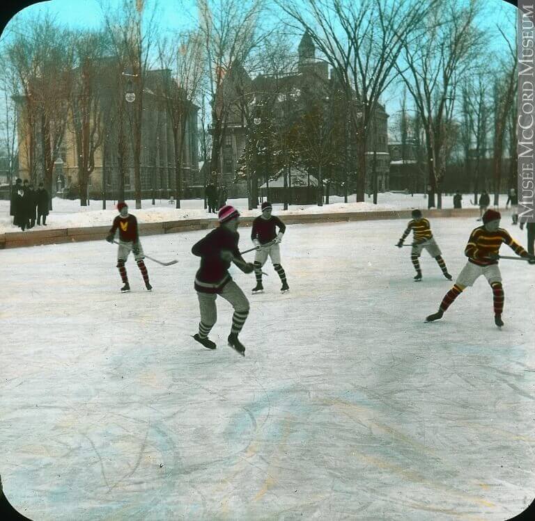 Partie de hockey, campus de McGill, Montréal, QC, vers 1910