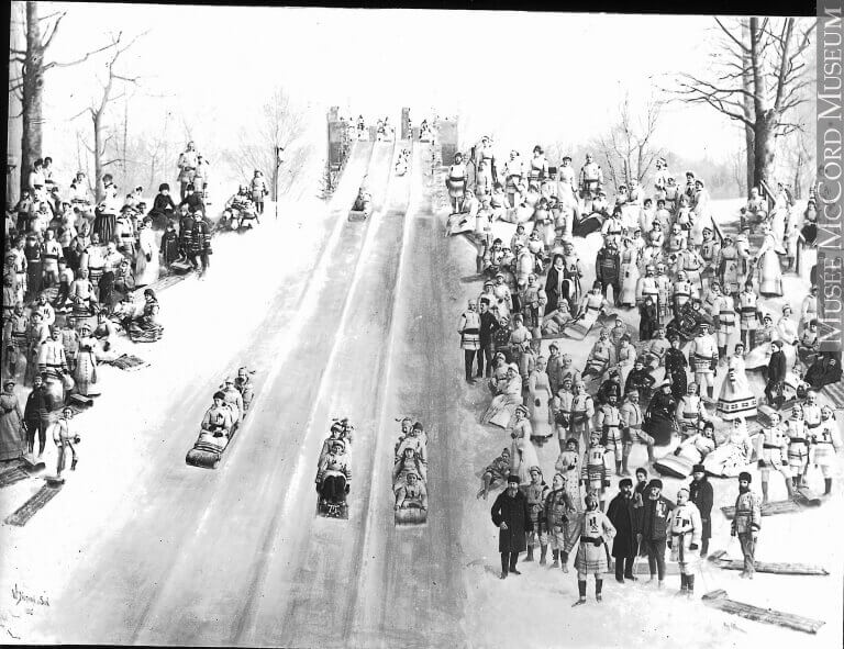 Toboggan sur la glissade du parc du Mont-Royal