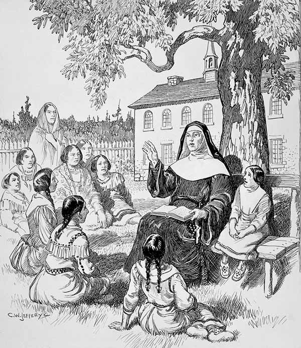 L'enseignement des enfants autochtones par la mère Marie de l'Incarnation au couvent des Ursulines