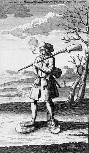 Pour nous aider à survivre, nous avons pris quelques trucs chez les Autochtones. Par exemple, nous avons commencé à utiliser des canots d’écorce pour nous déplacer sur les petites rivières parce qu’ils sont légers. Nous avons aussi commencé à utiliser des raquettes pour nous déplacer dans la neige. Nous utilisons aussi des vêtements autochtones comme les mocassins et les mitaines en peau de castor. Le reste de nos vêtements est du même style que ceux des Français.