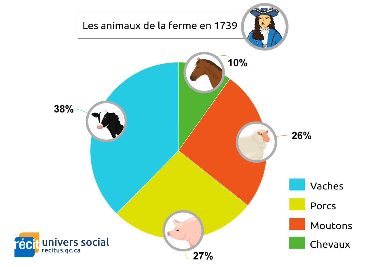 Les animaux de la ferme sont essentiels pour les produits qu’ils fournissent. La vache donne le lait pour le beurre et le fromage et la poule fournit les œufs. Ces animaux peuvent être mangés, tout comme le cochon et le mouton. À l’automne, on fait boucherie, c’est-à-dire que l'on tue quelques-uns des animaux pour manger leur viande, comme le cochon.