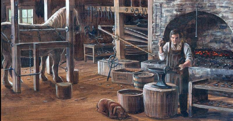 En venant ce matin, mon cheval a perdu un fer, je vais devoir aller chez le forgeron pour qu’il ferre mon cheval. Son jeune apprenti travaille vraiment bien. Il habite avec la famille du forgeron le temps d’apprendre le métier. Au bout d’un an ou deux, il pourra ouvrir son propre atelier ou travailler pour un forgeron.