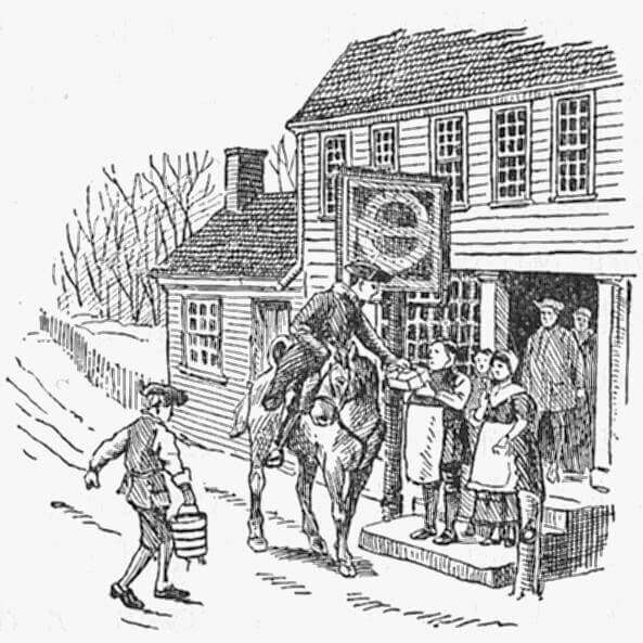 En 1745, un système postal joint les colons du Massachusetts à ceux de la Virginie. Ce système est sous contrôle royal depuis 1711. Il permet d'envoyer une lettre de Boston à Philadelphie en six jours. Les courriers à cheval se relaient d'une ville à l'autre. En Nouvelle-France, le gouvernement possède un système de courrier entre Québec et Montréal, mais il n'y a pas de système postal pour la population.