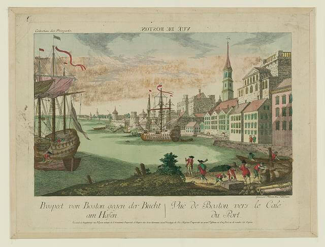 Les ports importants des Treize colonies sont Boston, New York et Philadelphie. À partir de leur expertise dans les pêches, les marchands de Boston exportent du blé, du bois, des navires et sont impliqués dans de grands circuits commerciaux triangulaires. En approvisionnant les Antilles, ils obtiennent du sucre qui est expédié en Angleterre en échange de divers produits vendus en Afrique où ils achètent des esclaves qui seront vendus dans les Antilles et dans les colonies du Sud.