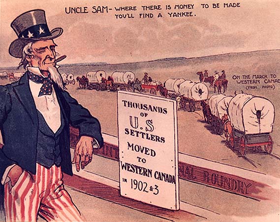 - Un tiers d'Américains Les colons qui viennent des États-Unis s'intègrent facilement au mode de vie des Prairies, car ce sont des fermiers. Ils connaissent les méthodes de culture nécessaires au climat des Prairies, ils possèdent l'équipement et ils ont plus d'argent que les immigrants venus d'Europe. Ils s'installent surtout en Alberta et en Saskatchewan.