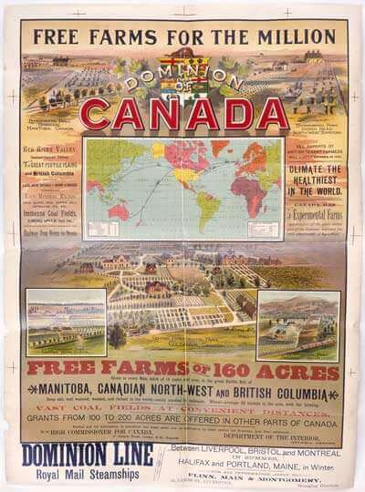 Que fait-il pour attirer des colons? Il lance une grande campagne de publicité qui vante les terres agricoles de l’Ouest et qui offre des terres gratuites (les homesteads) aux colons qui viennent s’y établir. Des brochures sont distribuées dans différents pays, des annonces sont publiées dans les journaux, des conférences et des voyages promotionnels sont organisés et, finalement, des agents sont engagés pour aller à l’étranger faire la promotion de l’Ouest. On ne fait toutefois pas mention du froid et de la neige, pour ne pas décourager les colons potentiels.