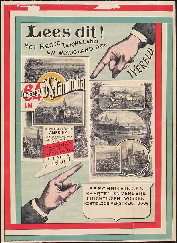 Publicité annonçant le Manitoba dans les Pays-Bas, vers 1890