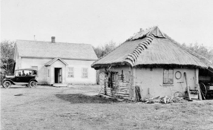 Les fermiers constituent le groupe le plus nombreux dans les Prairies. La majorité des fermes sont petites en 1905. Et comme la plupart des colons sont installés depuis peu de temps, les maisons sont souvent modestes : la charpente en bois est recouverte de mottes d’herbes – oui, tu as bien lu, des mottes d’herbes, car souviens-toi, les arbres sont rares dans la prairie. Les mottes formaient un matériau résistant qui faisait un peu comme des briques, sauf qu’elles attiraient les insectes et protégeaient mal de la pluie.
