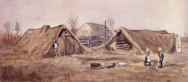 Maisons d'une colonie luthérienne alllemande en Saskatchewan, 1889
