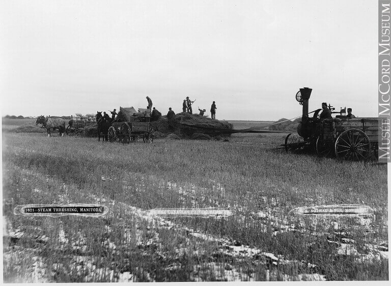 Moyettage des grains à Dauphin au Manitoba, 1908