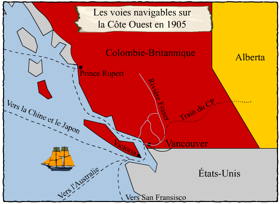 Les voies naviguables sur la Côte Ouest en 1905