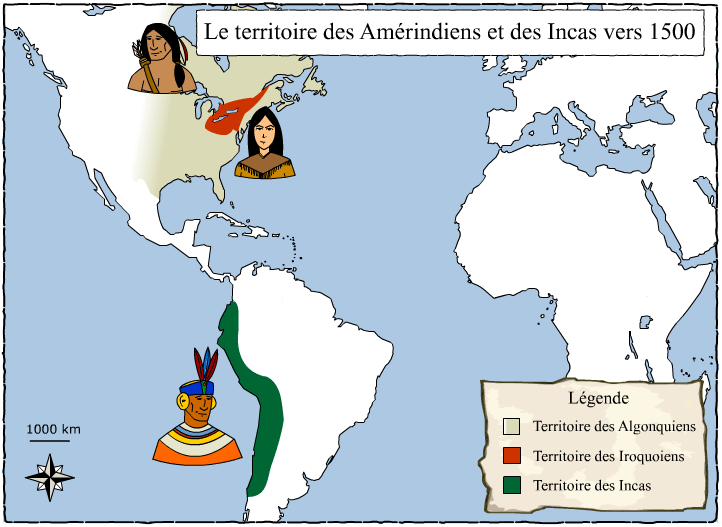 Les territoires incas, iroquoiens et algonquiens vers 1500