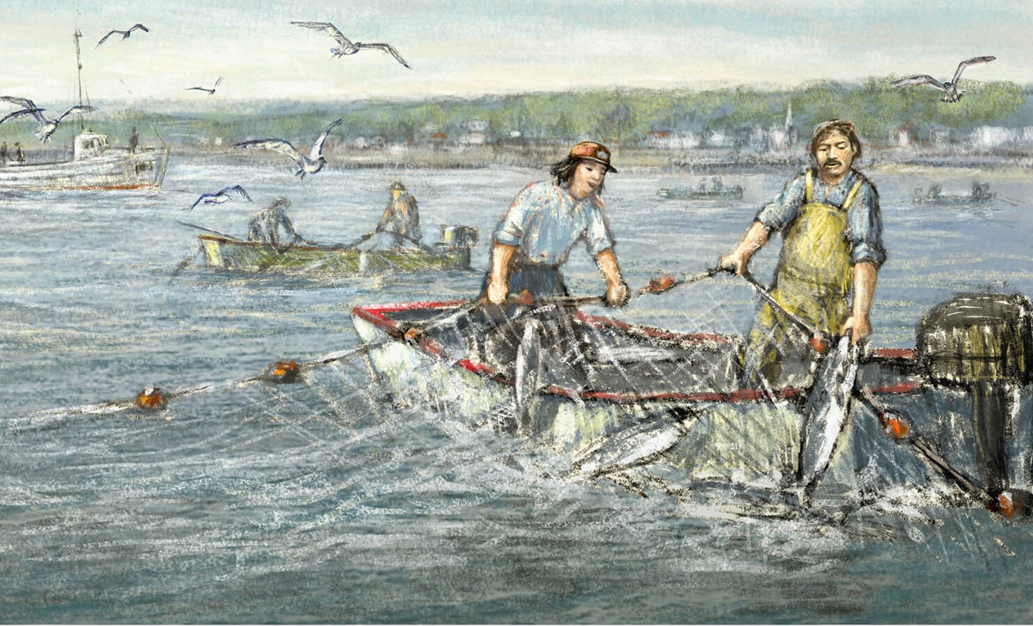 Pêcheurs micmacs pratiquant la pêche traditionnelle