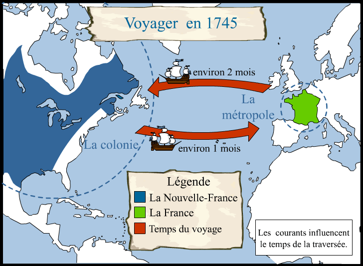 Carte sur la répartition de la population sur le territoire de la Nouvelle-France vers 1745