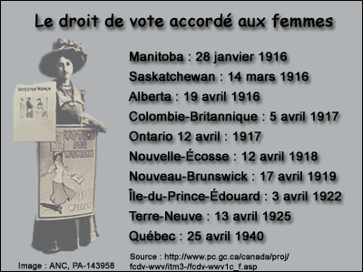 Tableau chronologique de l'octroi du suffrage aux femmes au Canada