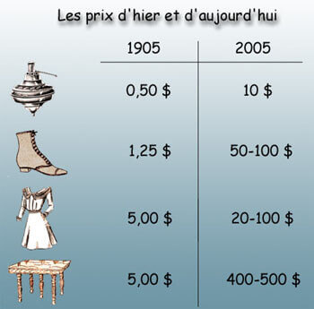 Les prix d'hier et d'aujourd'hui