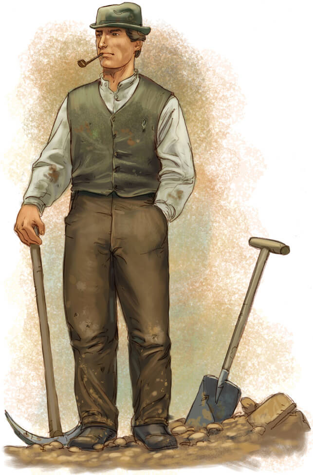 Je n’ai plus rien à manger, il va falloir que j’aille m’acheter des denrées. Encore une fois, ma paie va presque y passer. Je m’appelle Thomas Garceau et je travaille sur le chantier de construction du canal de Lachine, alors j’achète ma nourriture en ville, au marché ou dans les magasins. En ville, ce n’est pas comme à la campagne, je n’élève pas d’animaux et je ne cultive pas une terre.