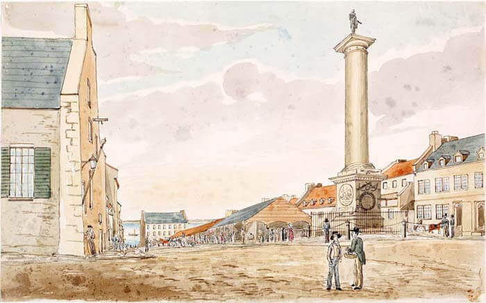 Le monument de Nelson et la Place du marché, Montréal, 20 juillet 1829