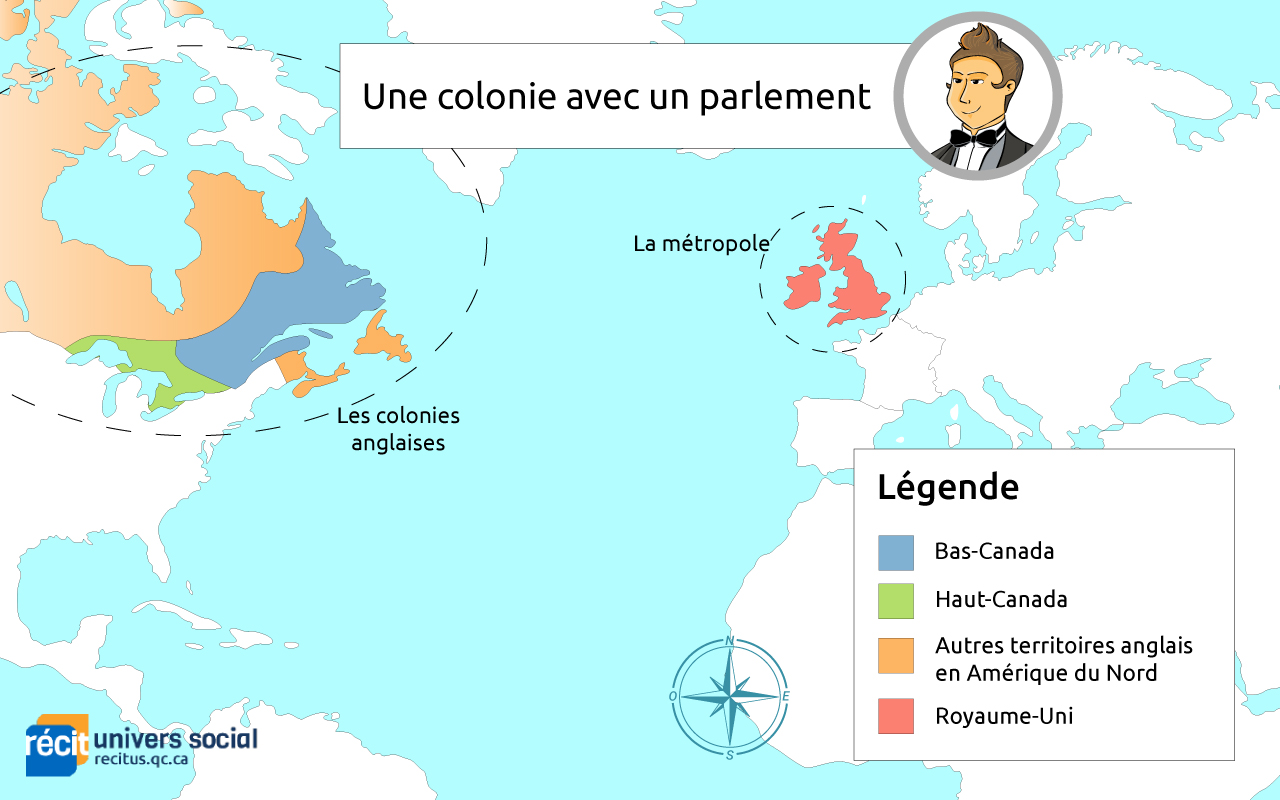 Du temps de la Nouvelle-France, en 1745, c'est la France qui était la métropole et il n'y avait pas de parlement. Le roi de France avait le pouvoir absolu dans la colonie. En 1820, il y a un système parlementaire au Bas-Canada qui ressemble beaucoup à celui de la Grande-Bretagne. Par contre, la Grande-Bretagne a toujours le dernier mot dans l’administration de la colonie et son représentant au Canada, le gouverneur, peut bloquer les lois votées par l’Assemblée législative. D’ailleurs, certains députés commencent à réclamer le gouvernement responsable, c’est-à-dire que toutes les décisions concernant le Bas-Canada soient prises par les députés élus par le peuple.