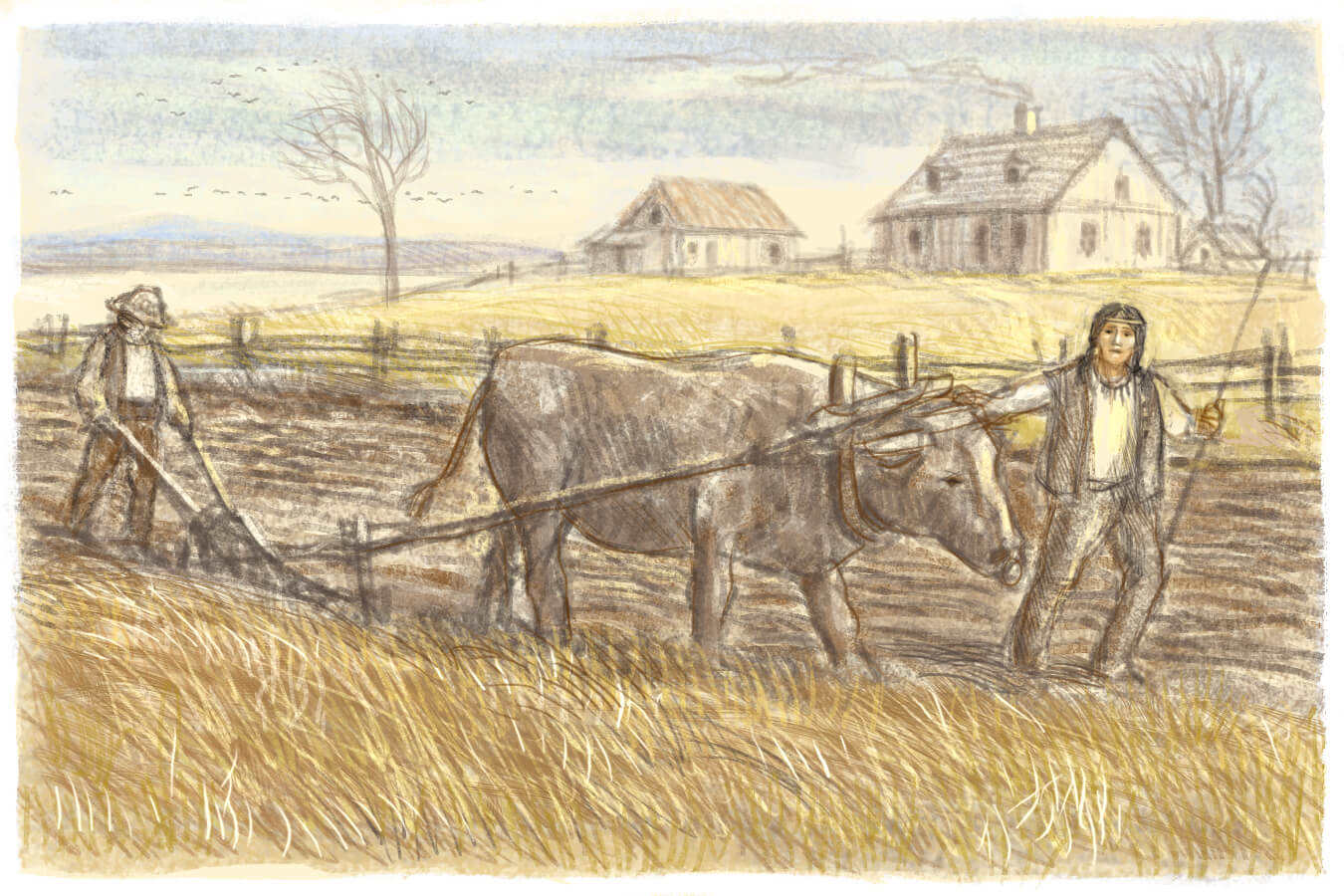 Il y a aussi des Autochtones qui travaillent pour des colons français sur leur terre. D’autres vont vendre les objets qu’ils fabriquent : des canots, des produits de leur agriculture ou de la chasse. Ils se rendent alors dans les villes comme Québec et Montréal.
