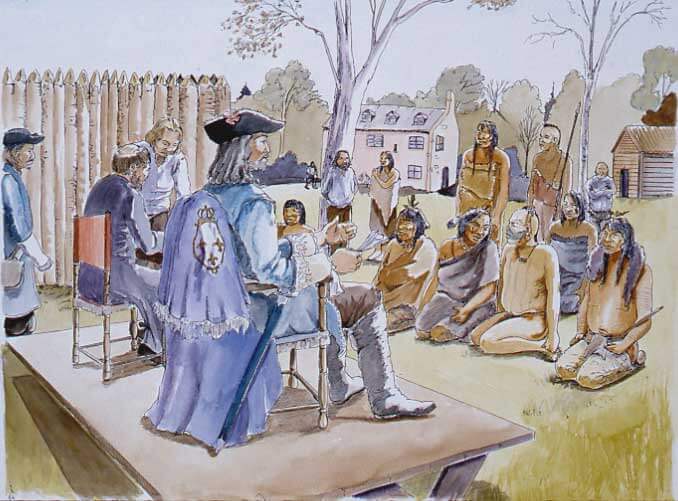 Les Hurons-Wendats et les Mohawks domiciliés se voient comme des alliés des Français. Ils ne se considèrent pas comme étant soumis au roi de France. Ils sont autonomes. Le gouverneur de la Nouvelle-France est comme un chef qui s’occupe des affaires courantes dans leur société. Il amène les gens à s’entendre mais il ne peut pas forcer quelqu’un à lui obéir ou à être d’accord avec lui.