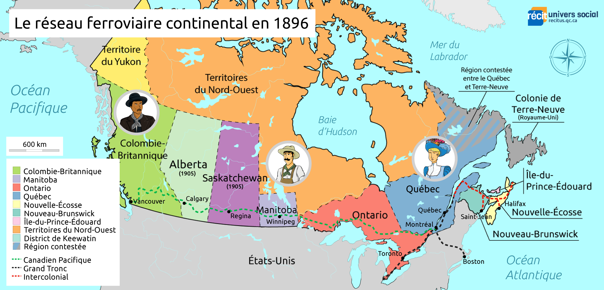 Pourquoi est-il si important? Avant de répondre à cette question, rappelle-toi d’abord qu’en 1905, les moyens de transport sont encore peu nombreux. Les automobiles sont rares dans les Prairies. D’ailleurs, elles le sont aussi à Montréal, la ville la plus importante du pays. Il n’y a pas encore de routes pavées : il s’agit plutôt de sentiers dans la forêt ou la prairie. Il y a bien sûr les chevaux, effectivement indispensables pour se déplacer dans les Prairies, mais ce n’est pas un moyen de transport très rapide. De même, la circulation fluviale est lente et ne se rend pas partout.