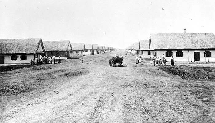 Village doukhobor de Vosnesenya à Thunder Hill au Manitoba, vers 1899