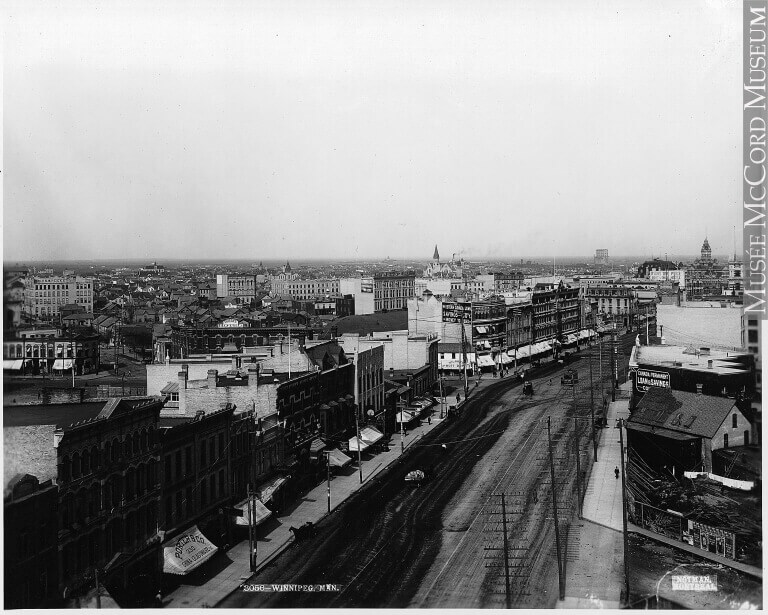 Quand on pense aux Prairies, on pense surtout au paysage de plaine et à l’agriculture. Pourtant, les villes s’y développent aussi. Une ville se distingue en 1905 : Winnipeg. Le chemin de fer du Canadien Pacifique y compte beaucoup d’installations (gares, ateliers, etc.) et contribue à son développement. À peu près tous les immigrants qui s’installent dans les Prairies passent par Winnipeg. La ville devient la porte d’entrée des Prairies.