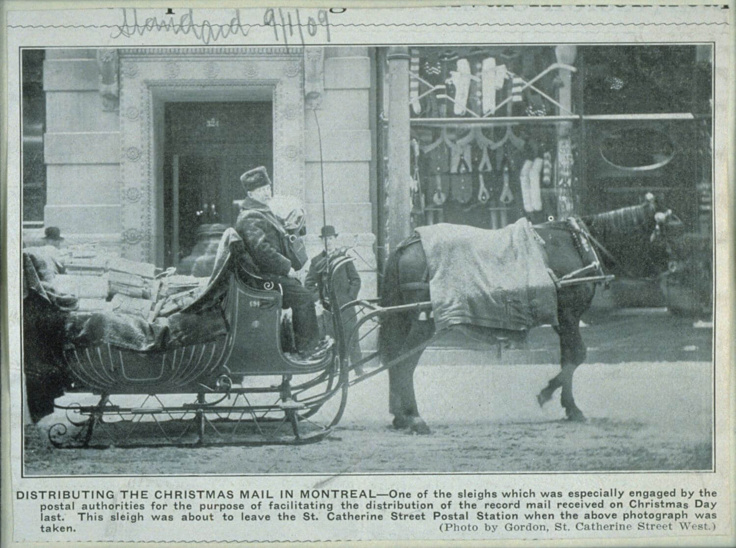 Quelle solution te reste-t-il si tu veux raconter ta bonne nouvelle à ta cousine en 1905? La poste et la télégraphie. Envoyer un télégramme est plus dispendieux, mais c’est plus rapide. Le mieux est donc de lui écrire une lettre ou une carte postale et de l’envoyer par la poste, un système fiable, administré par le gouvernement canadien depuis 1851. Le courrier sera alors acheminé soit par cheval ou par le train, selon l’endroit où habite ta cousine.