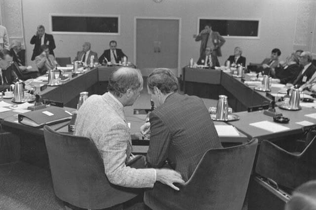 Pierre Elliott Trudeau et Jean Chrétien, au cours de la Conférence constitutionnelle, Ottawa, 1981