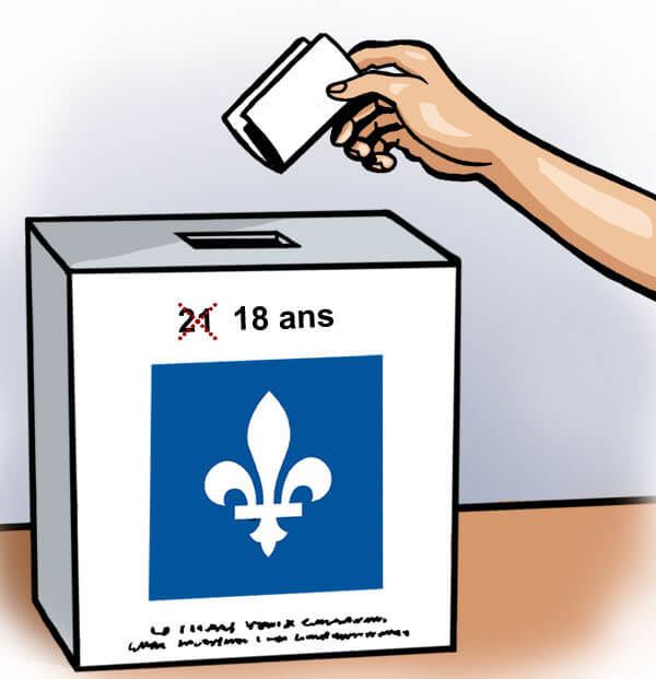 Jusqu’en 1963, l’âge du droit de vote était de 21 ans. Cela limitait beaucoup le droit de parole des jeunes dans les débats politiques. De plus, la génération montante des baby boomers avait beaucoup de choses à dire et plusieurs revendications à faire. Pour leur permettre de participer davantage à la vie politique québécoise, le gouvernement libéral de Jean Lesage a abaissé l’âge du droit de vote à 18 ans en 1963.