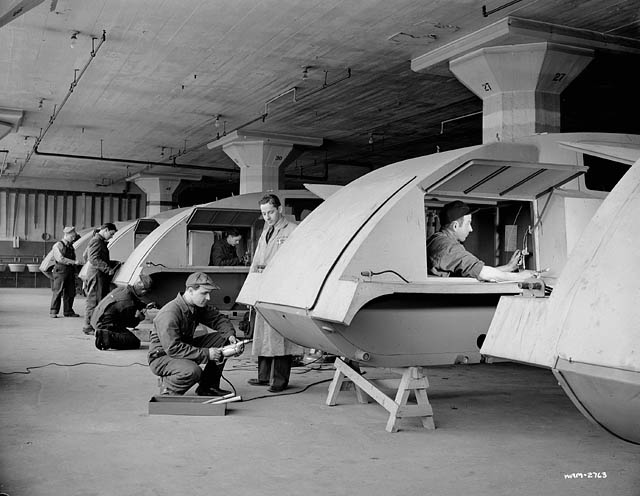 Les ouvriers de l'usine Bombardier construisent des motos-neige militaires, 1943