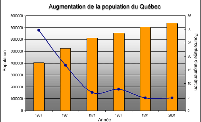En 1980, la population du Québec est de 6 568 000 personnes. La croissance démographique a beaucoup ralenti par rapport aux années précédentes. Le taux de natalité a diminué de moitié par rapport à ce qu’il était en 1960 et la population du Québec augmente moins rapidement que celle du reste du Canada. Avec la chute de la natalité, l’immigration devient la principale source d’augmentation de la population, qui s’en trouve de plus en plus diversifiée.